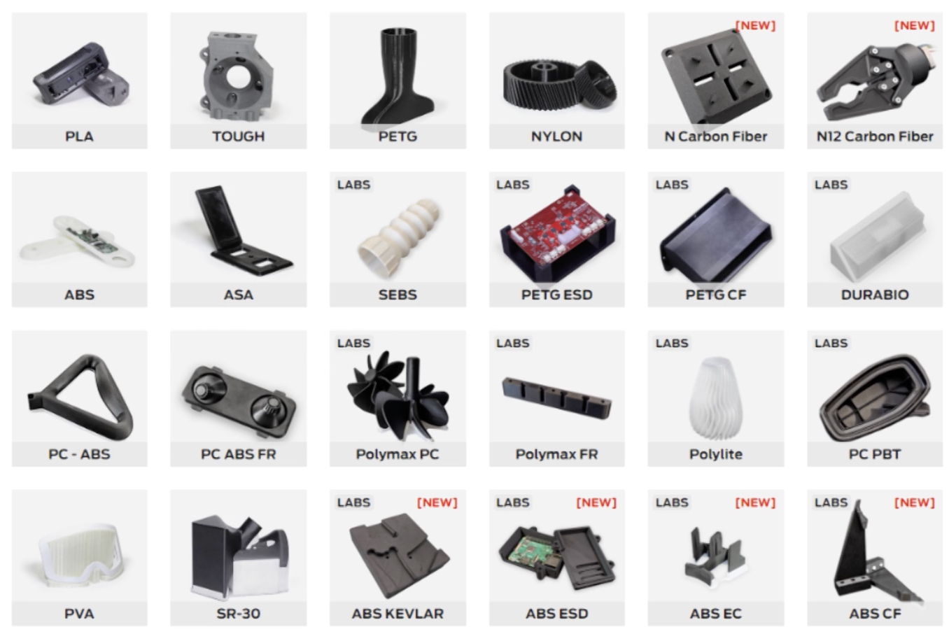 There are a full range of engineering-grade materials, from PC-ABS and ASA, to Nylon and Polycarbonate.