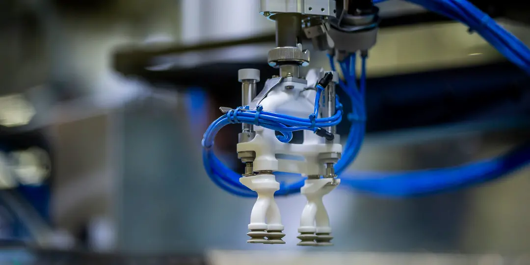 Created by Azoth, these aluminum gripper fingers were converted to polymer gripper fingers